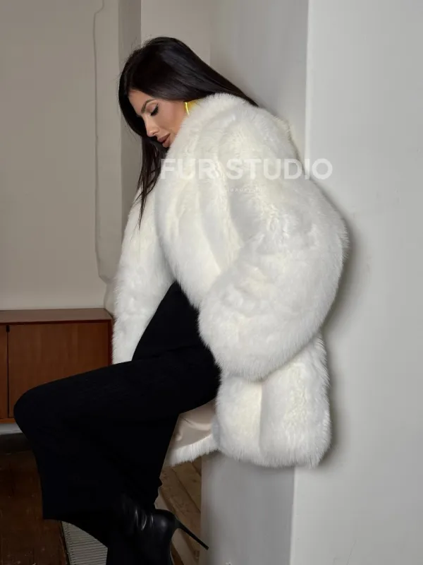 Белая шуба из меха лисы - воротник шаль 101456