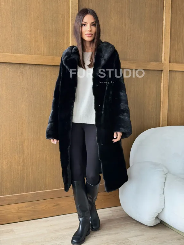 Черная норковая шуба с капюшоном 102765