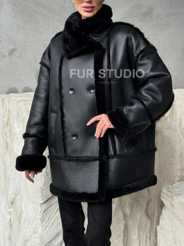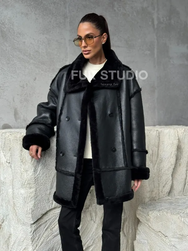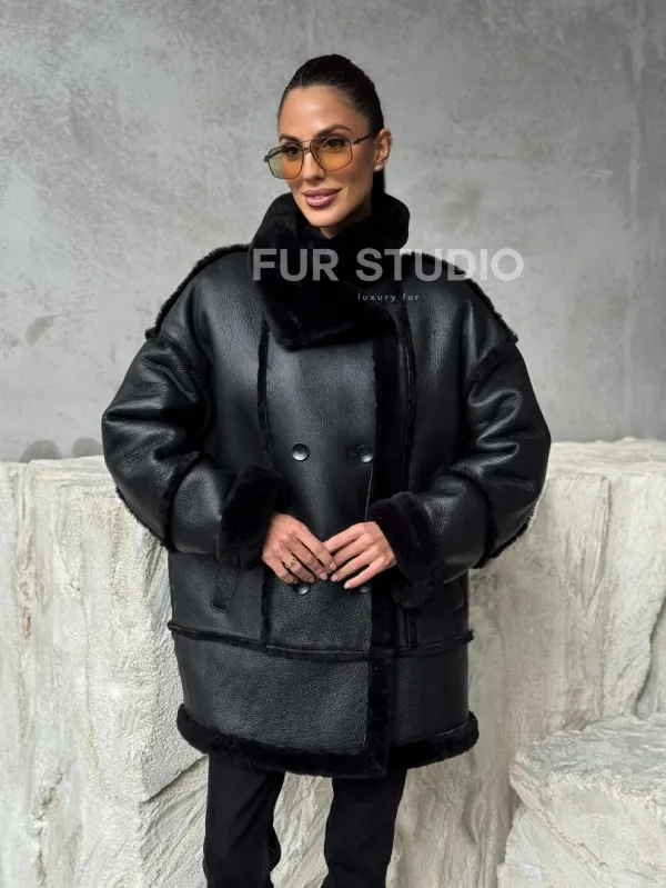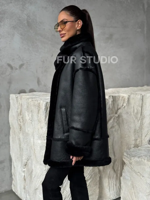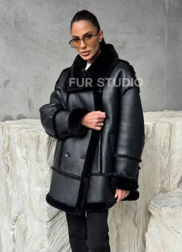 Черная современная дубленка 102392