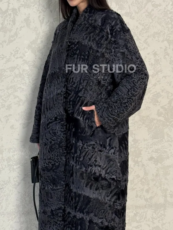 Длинная шуба из каракуля в цвете графит доступна для покупки в нашем шоуруме Furs Studio в . У нас так же есть доставка во все города России. Добавьте немного роскоши в свой гардероб с этой шубой, которая будет служить вам многие годы.