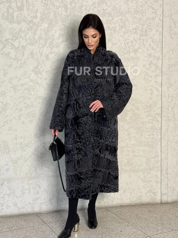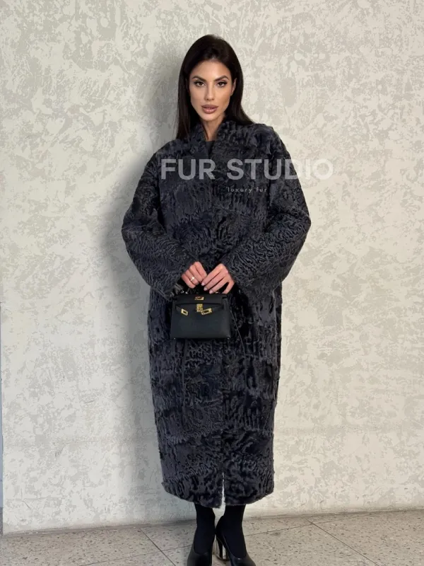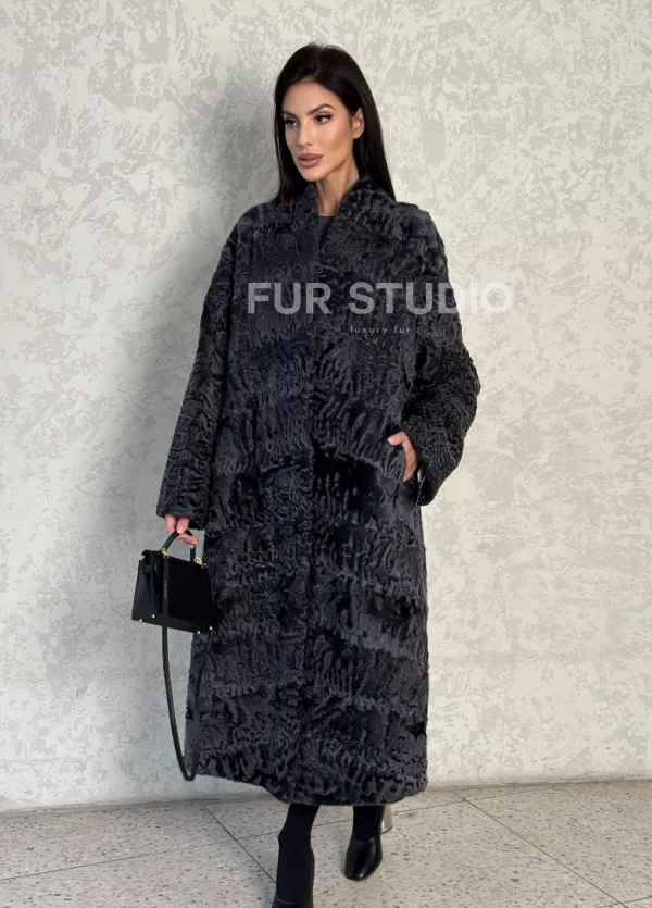 Длинная шуба из каракуля в цвете графит 100128