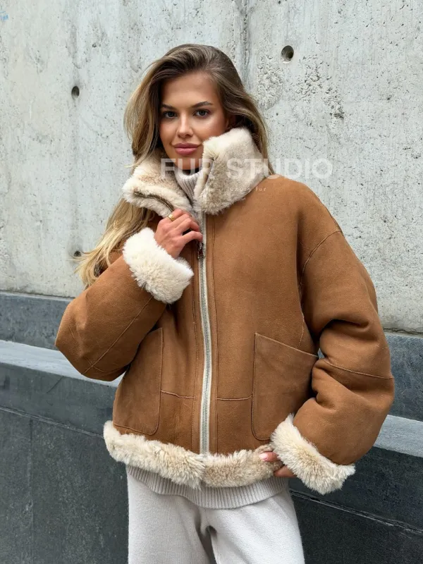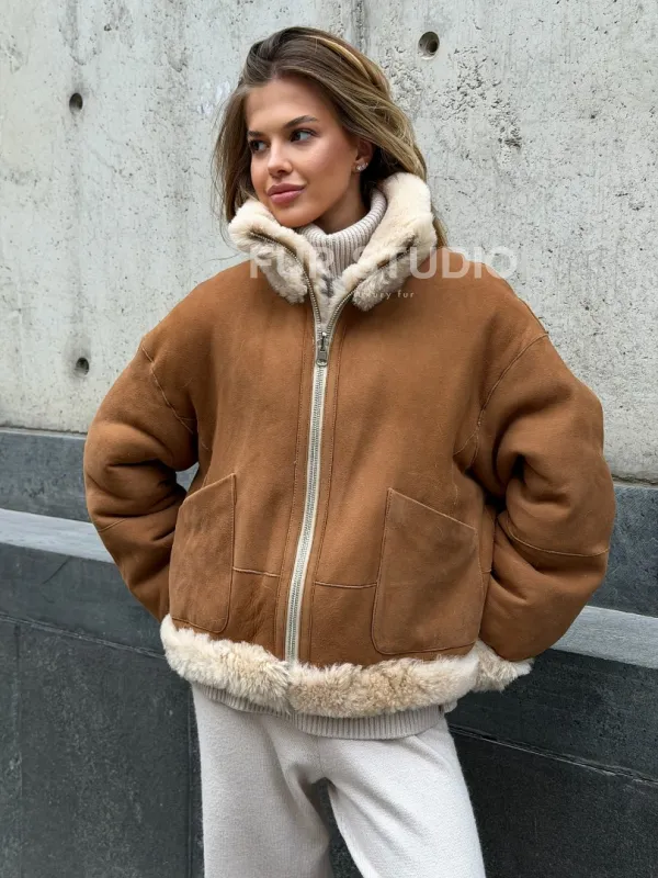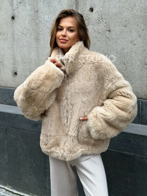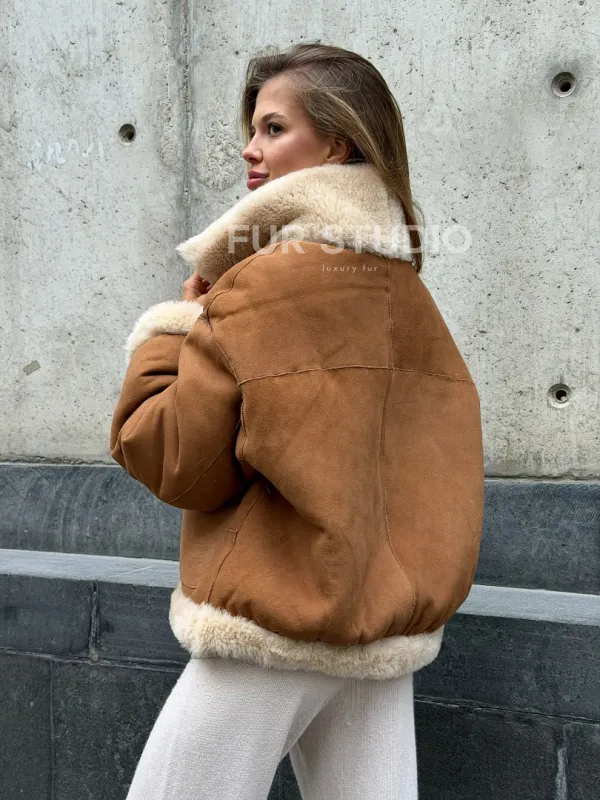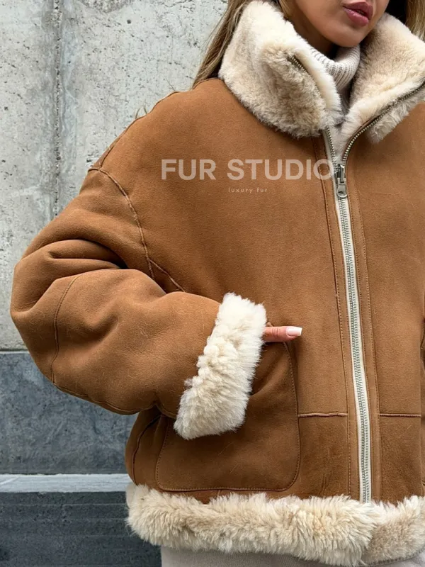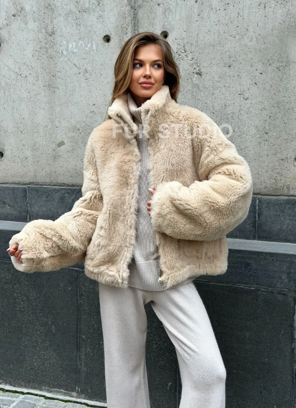 Двухсторонняя короткая дубленка из овчины 102538