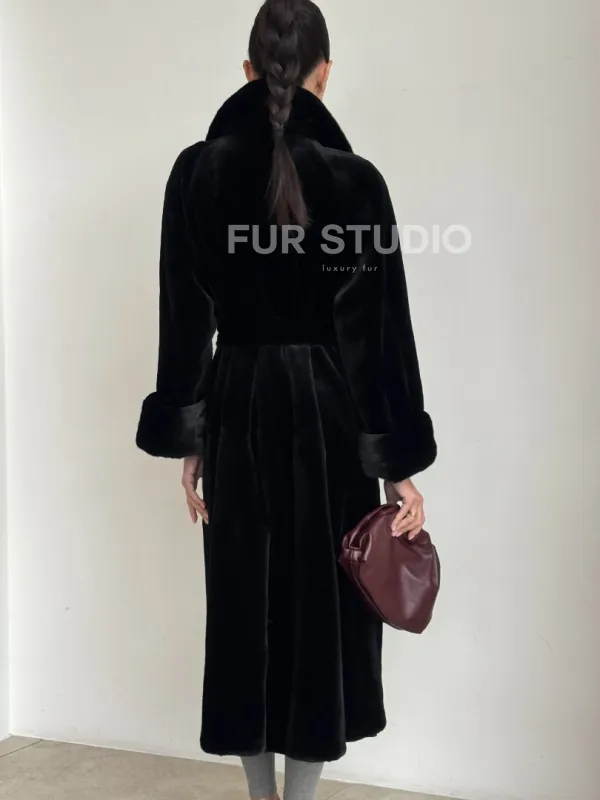 Мех данной шубы аукционная норка , цвет черный. Предлагается в размерах от 42 до 52. Длина модели 115-120 см, что выгодно подчеркивает фигуру девушек. Эта модель идеально подойдет для девушек и женщин, предпочитающих роскошные натуральные меха.