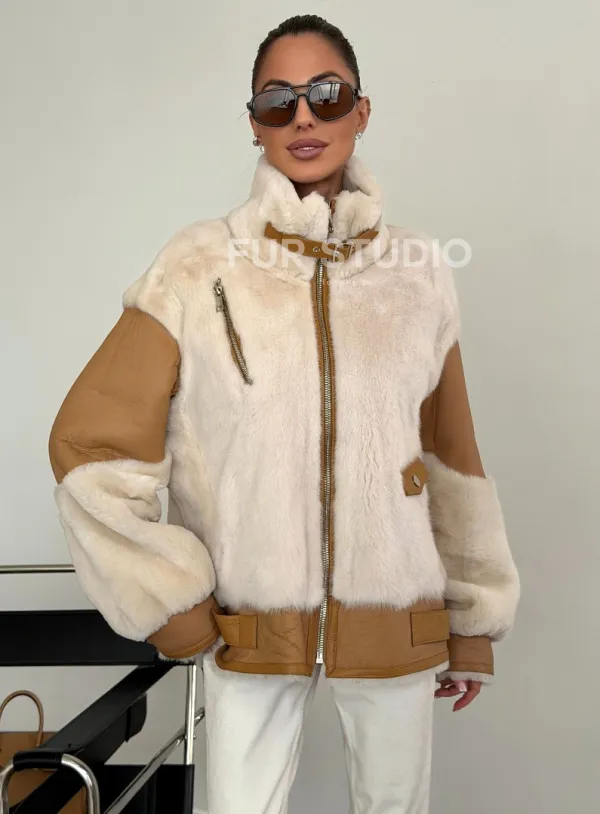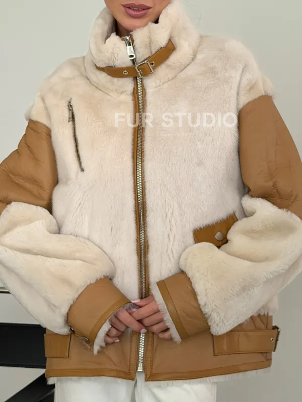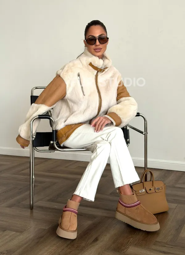 Комбинированная дубленка из норки и овчины 102612