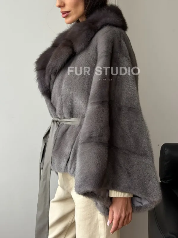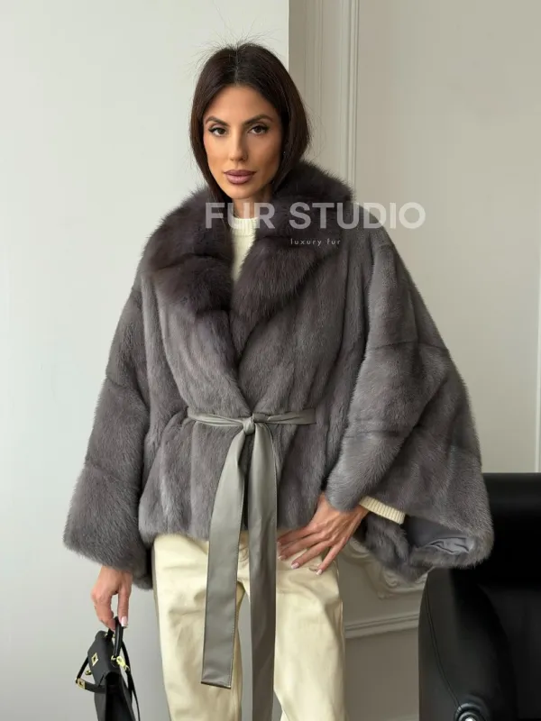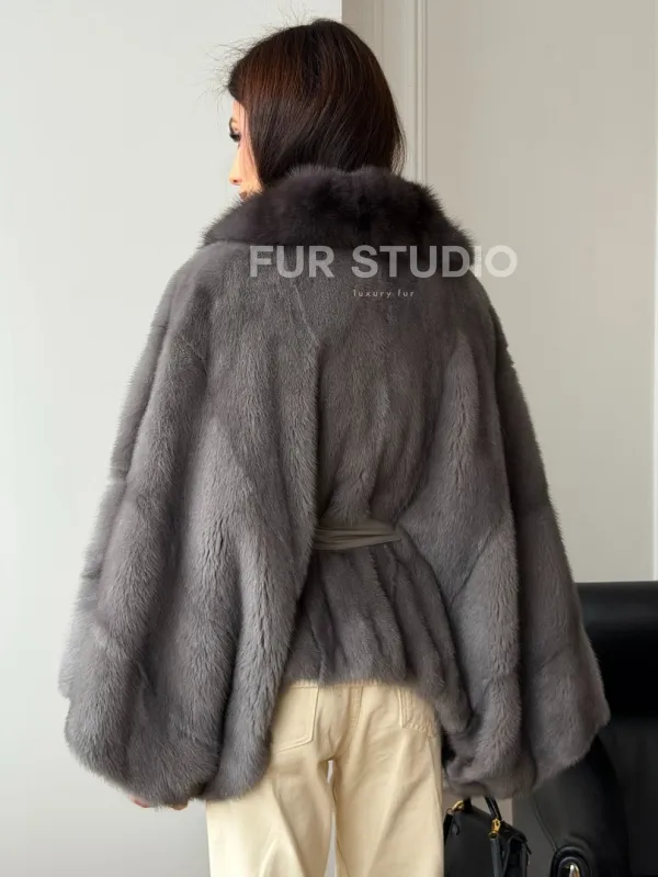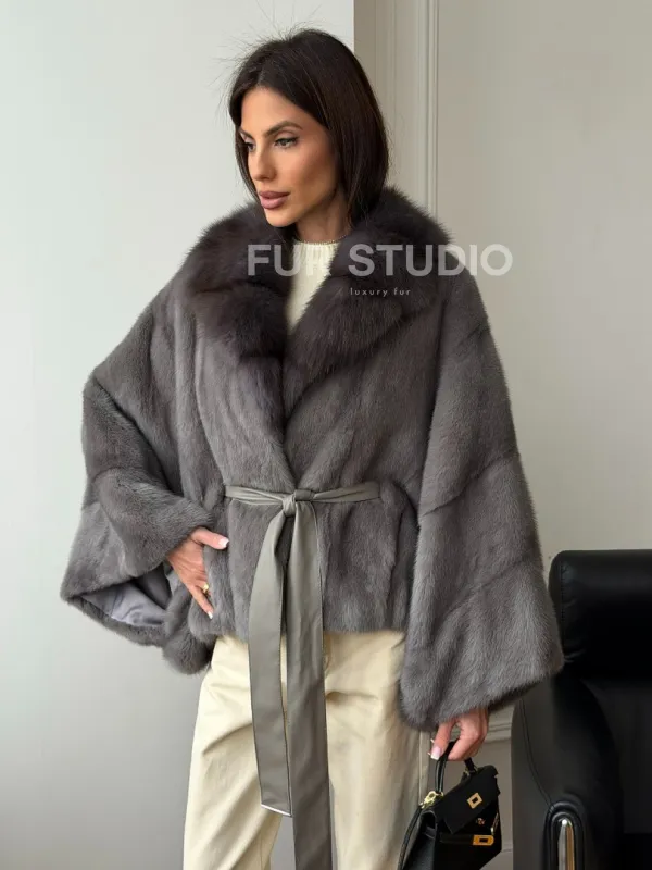 Мех данной шубы аукционная норка, цвет серый. Предлагается в размерах от 38 до 60 (oversize). Длина модели 50-55 см, что выгодно подчеркивает фигуру девушек. Эта модель идеально подойдет для девушек и женщин, предпочитающих роскошные натуральные меха.