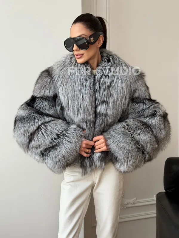 Мех данной шубы лиса, цвет серый. Предлагается в размерах от 42 до 48. Длина модели 50-55 см, что выгодно подчеркивает фигуру девушек. Эта модель идеально подойдет для девушек и женщин, предпочитающих роскошные натуральные меха.