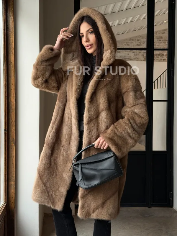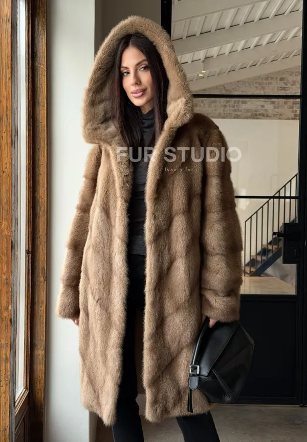 Норковая шуба с капюшоном - цвет пастель доступна для покупки в нашем шоуруме Furs Studio в . У нас так же есть доставка во все города России. Добавьте немного роскоши в свой гардероб с этой шубой, которая будет служить вам многие годы.