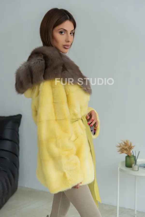Норковое пончо - шуба с капюшоном из меха куницы - желтого цвета доступна для покупки в нашем шоуруме Furs Studio в . У нас так же есть доставка во все города России. Добавьте немного роскоши в свой гардероб с этой шубой, которая будет служить вам многие годы.