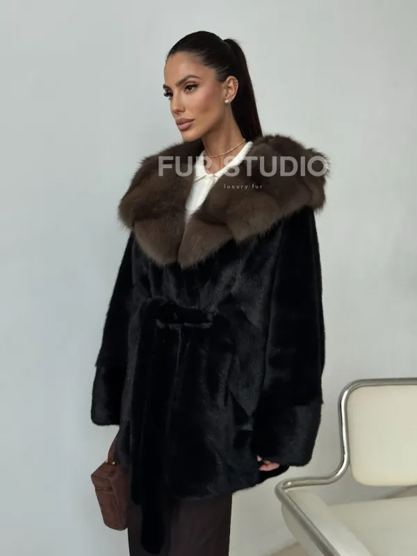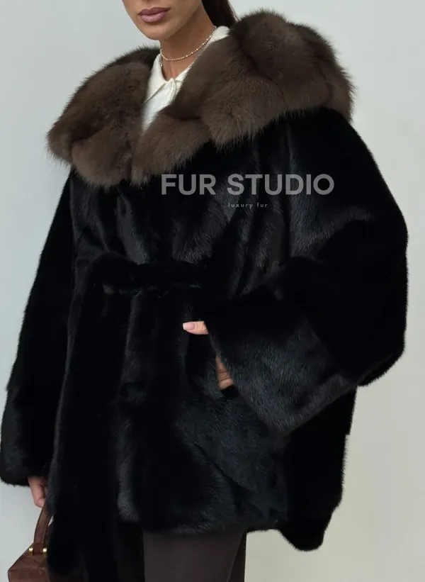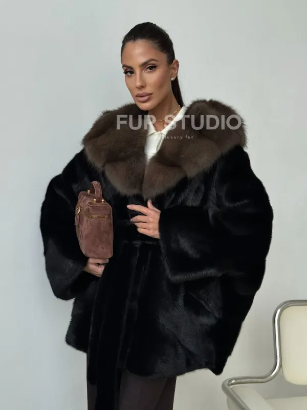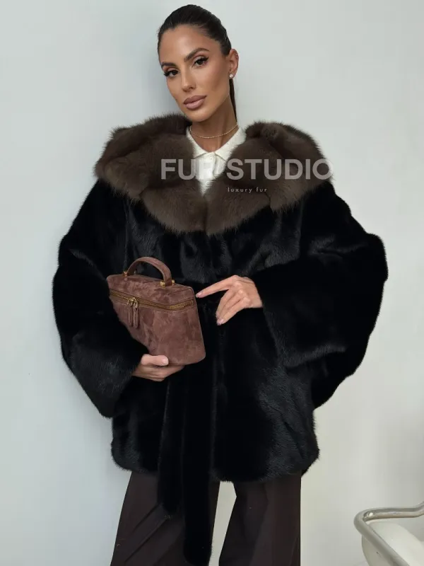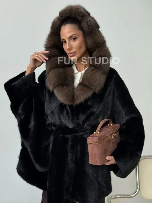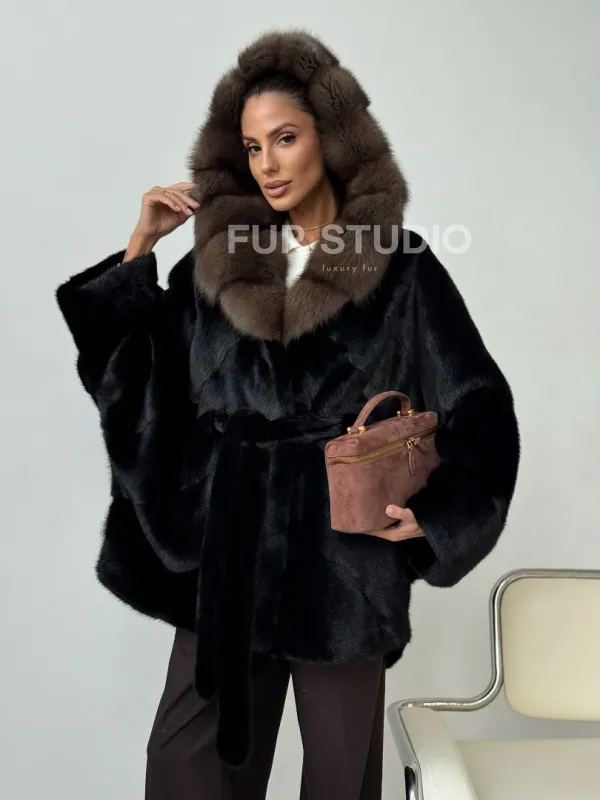 Норковый полушубок с капюшоном - летучая мышь 102399