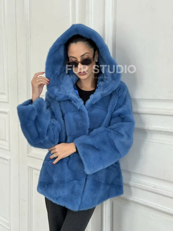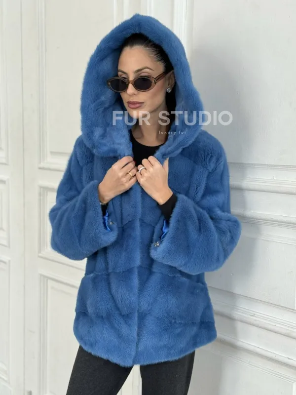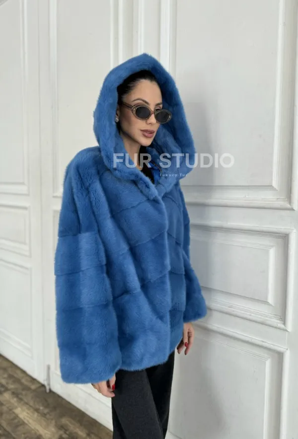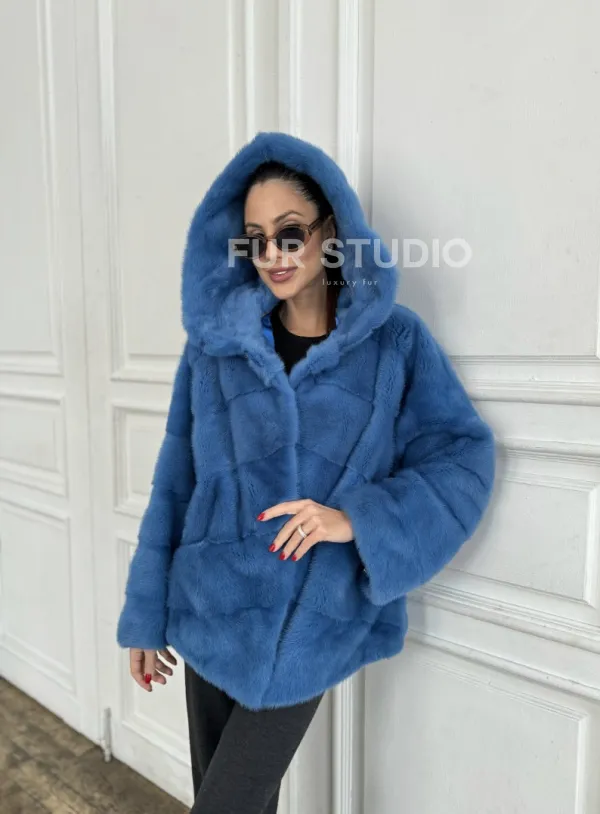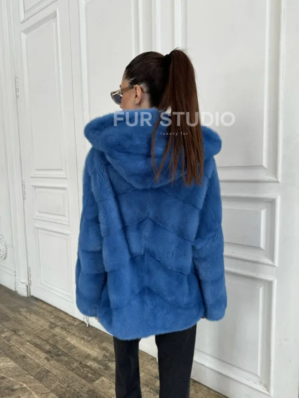 Норковый полушубок с капюшоном, паркет - цвет васильковый доступна для покупки в нашем шоуруме Furs Studio в . У нас так же есть доставка во все города России. Добавьте немного роскоши в свой гардероб с этой шубой, которая будет служить вам многие годы.