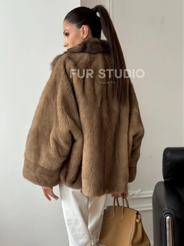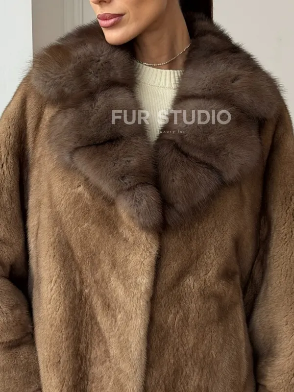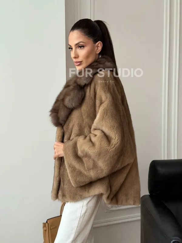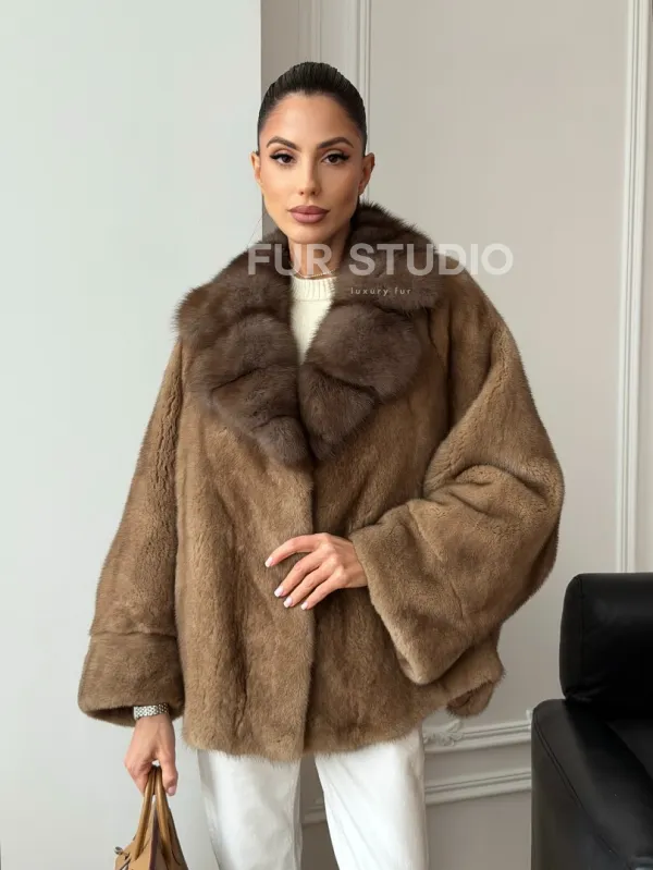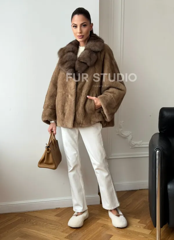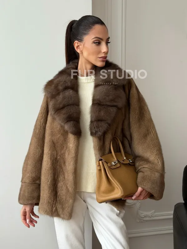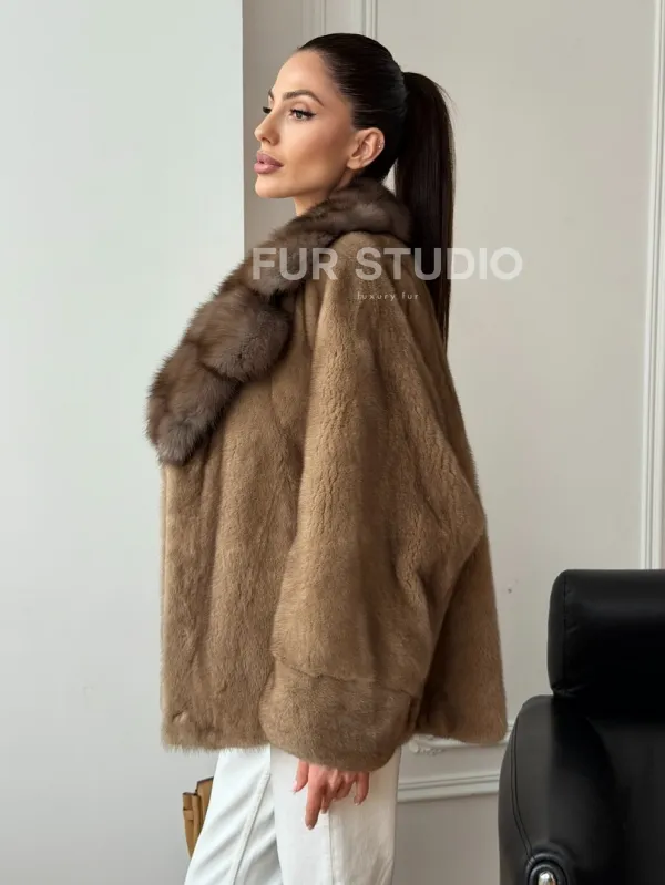 Норковый полушубок с воротником куницы 70 см 102736