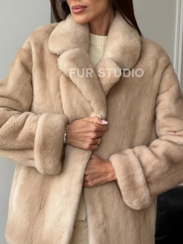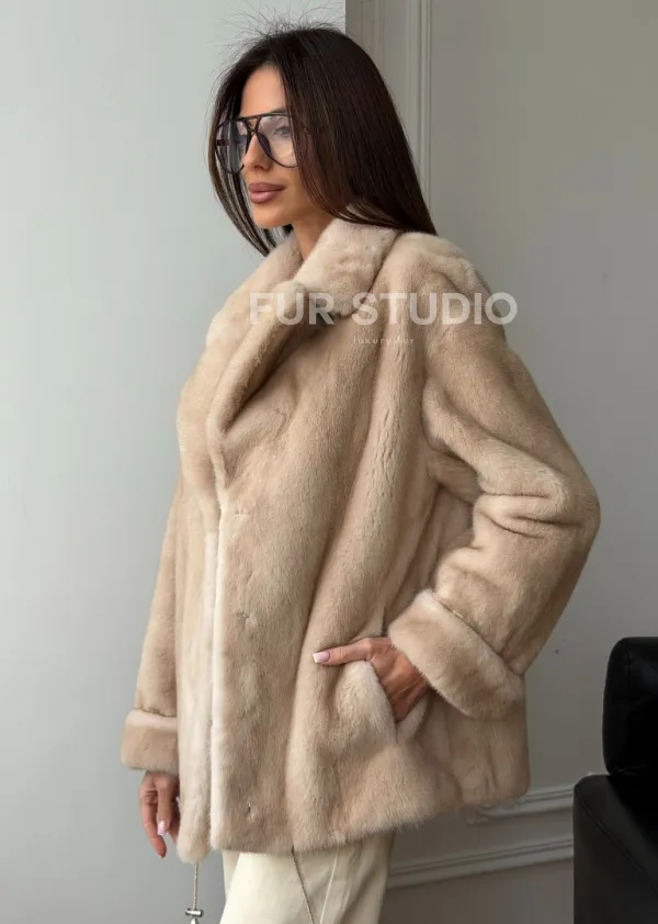 Норковый полушубок в натуральном цвете пастель 102297