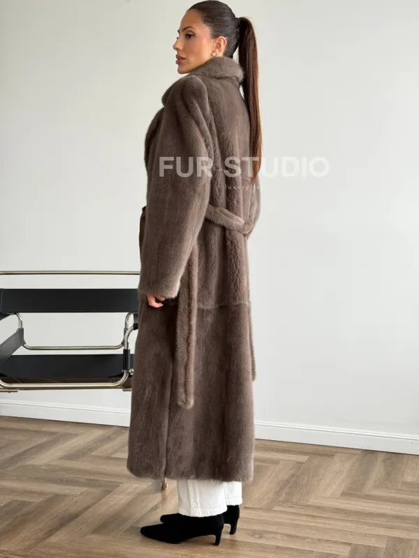 Прямая норковая шуба с поясом 102651