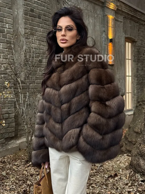 Благородный цвет выгодно оттенит цвет волос и глаз владелицы. Изделие будет гармонично смотреться с базовым гардеробом, подойдет под вечерний наряд. Добавьте к шубе брендовую сумочку и стильную обувь – будете выглядеть, как с обложки журнала. Купить роскошную шубу из меха соболя стойка воротник могут женщины, которые знают, что хотят и берут от жизни все.