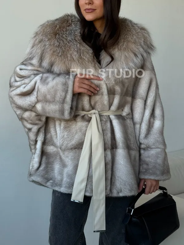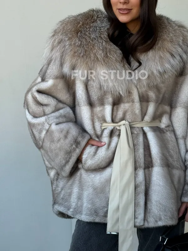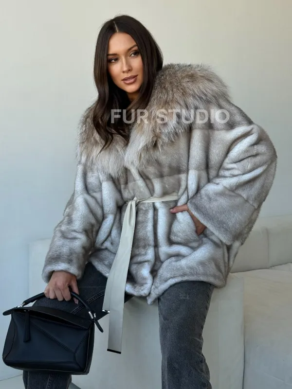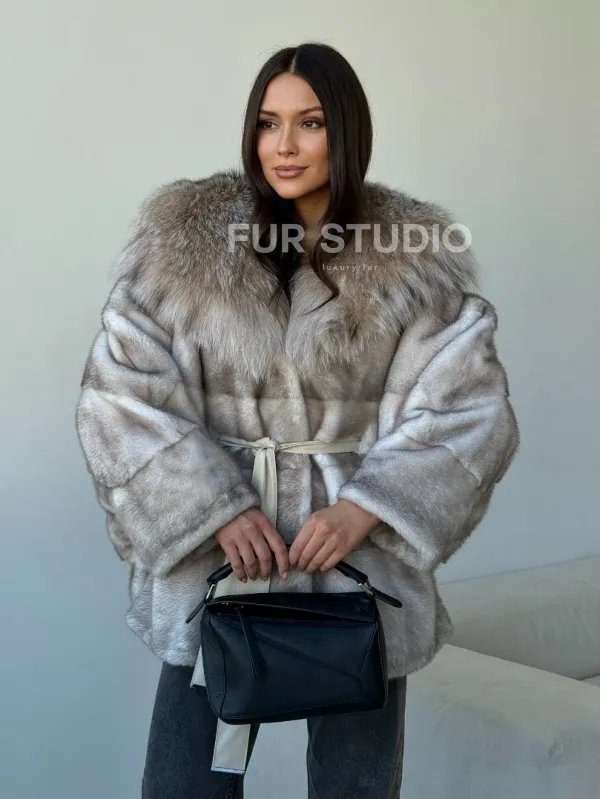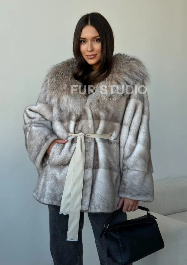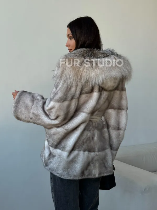 Шуба из натуральной норки с капюшоном из рыси 102511