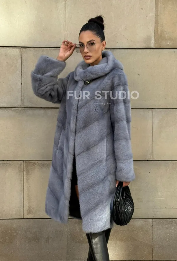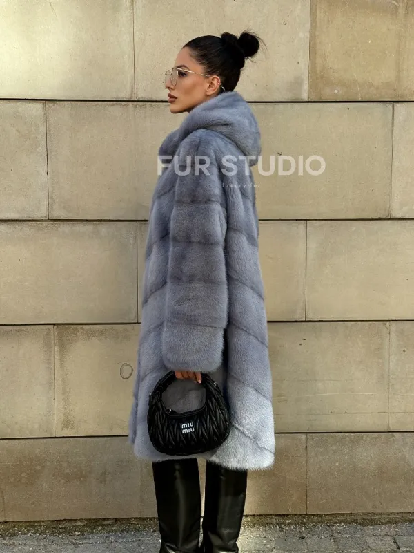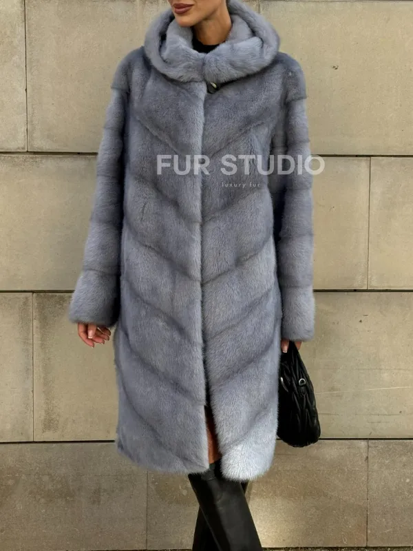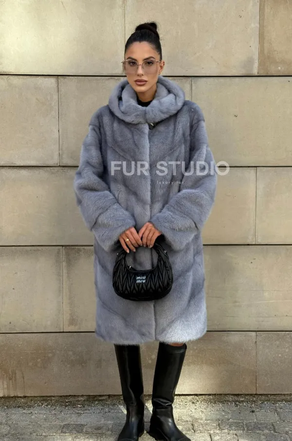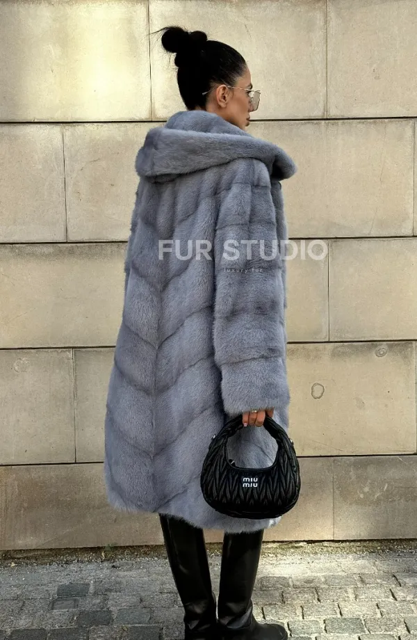 Шуба midi из меха норки с капюшоном, рукава трансформер 101059