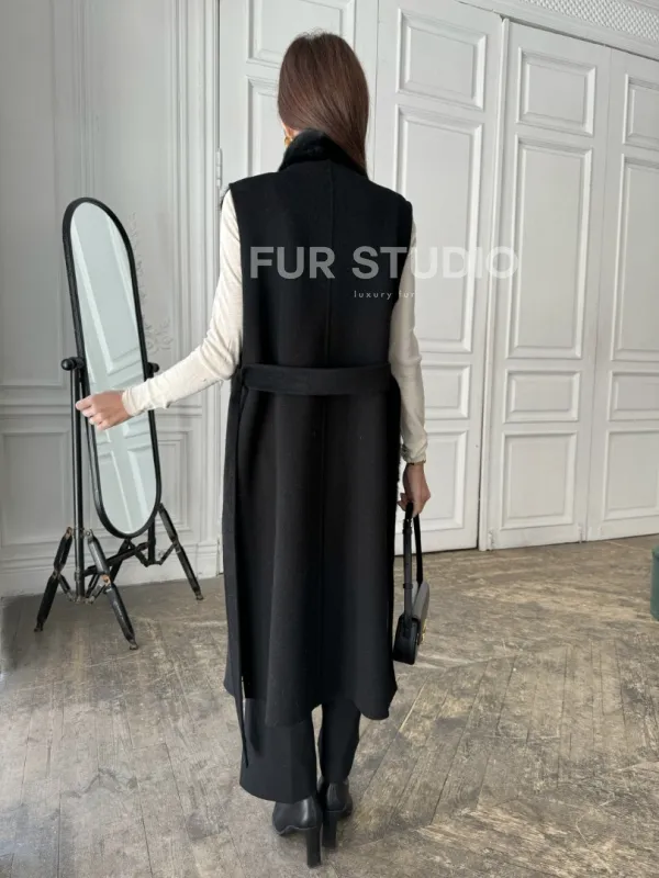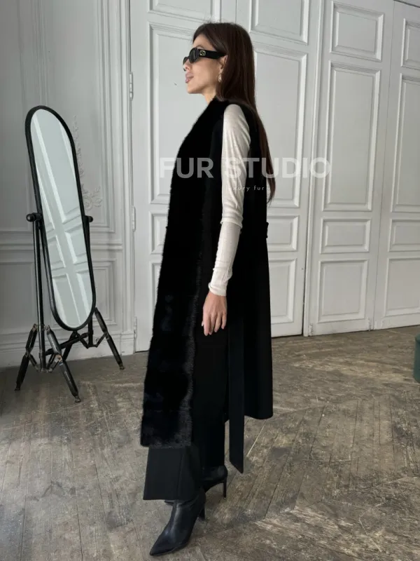 Стильное кашемировое пальто с мехом норки 100892