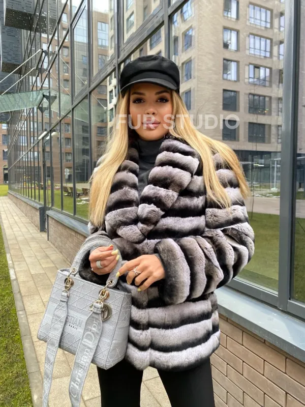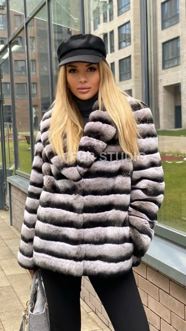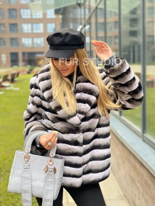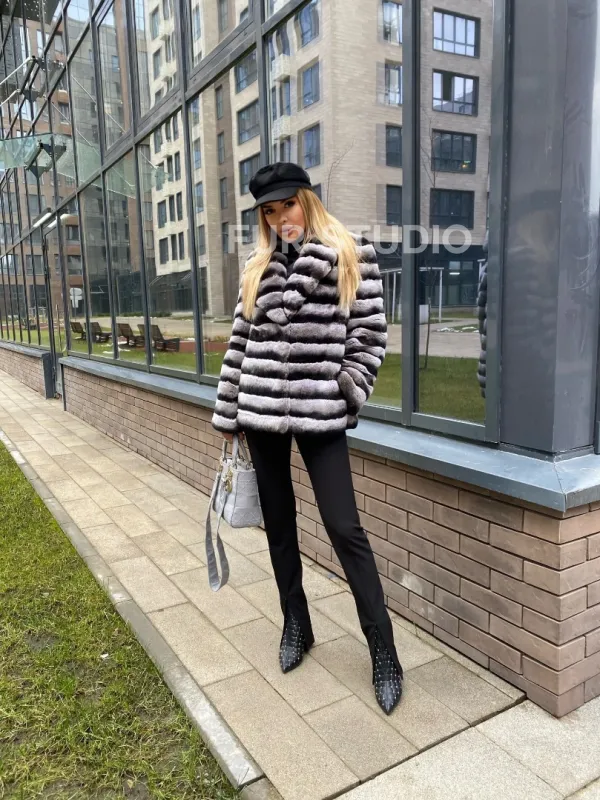Укороченная шиншилловая шуба из меха орилага 100268