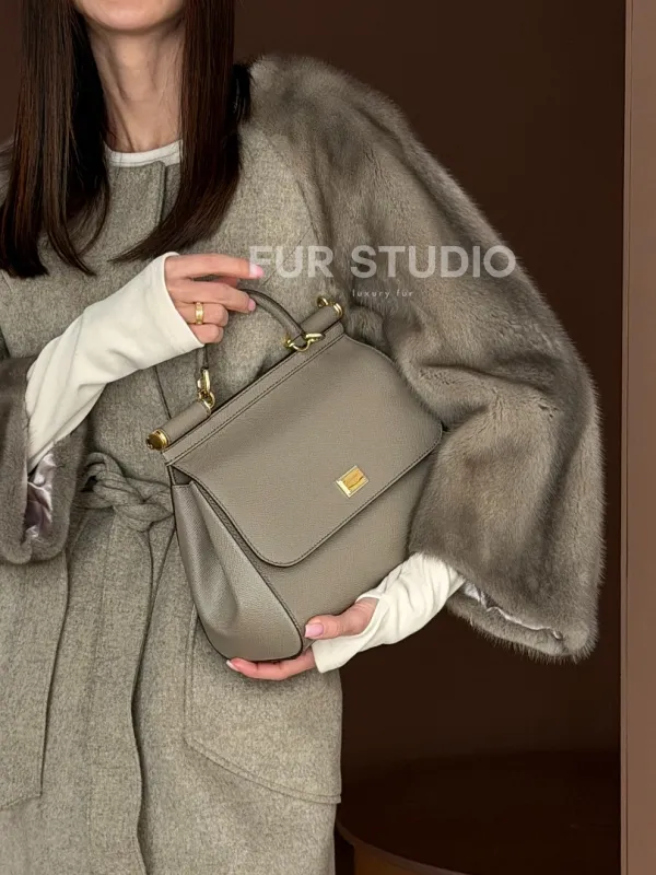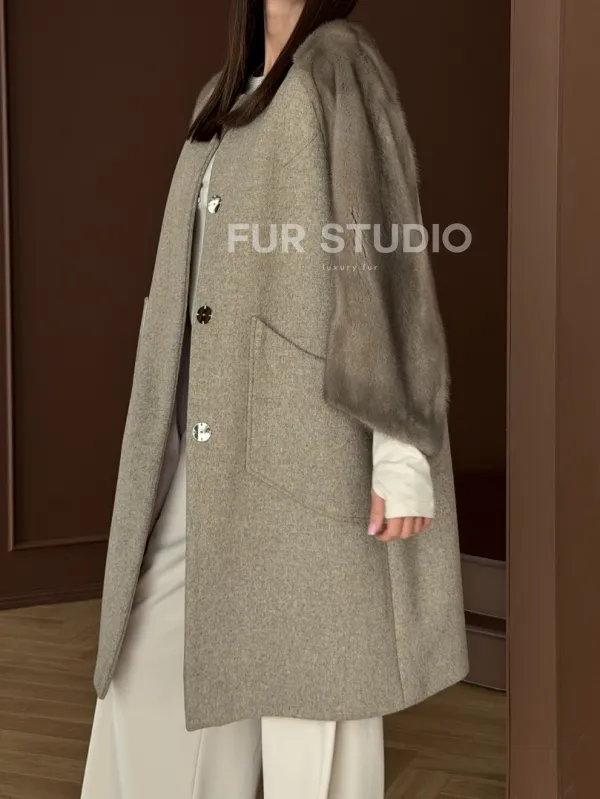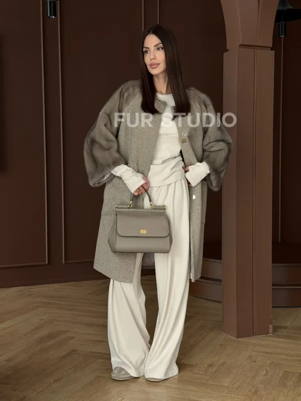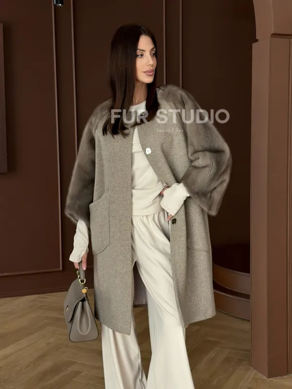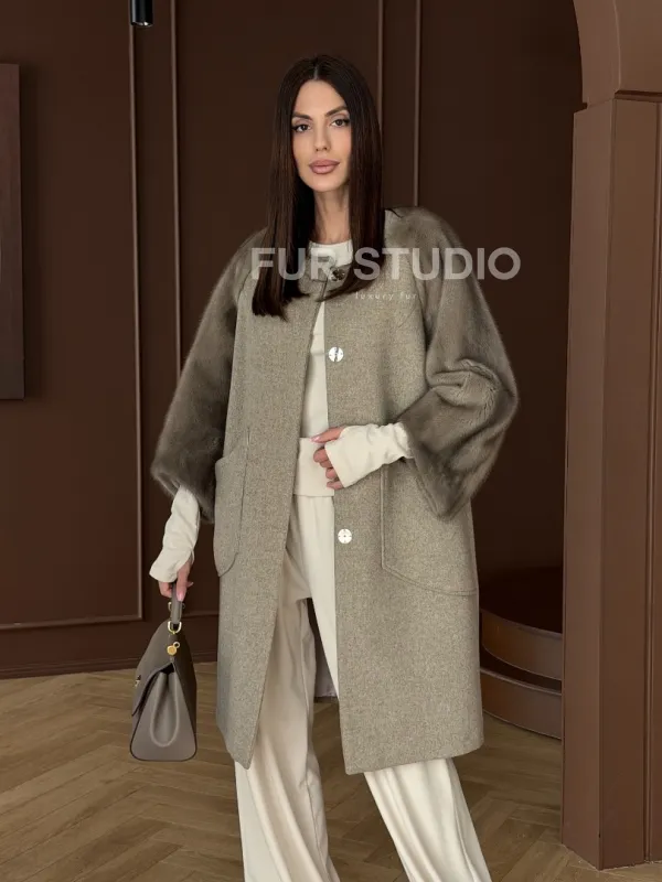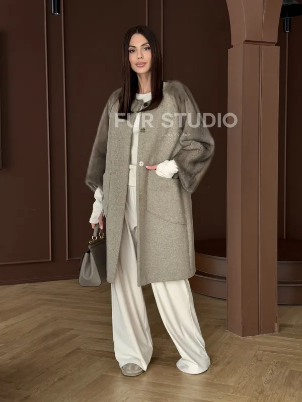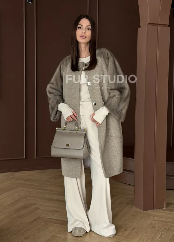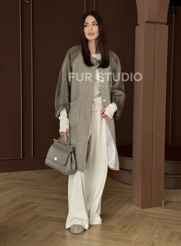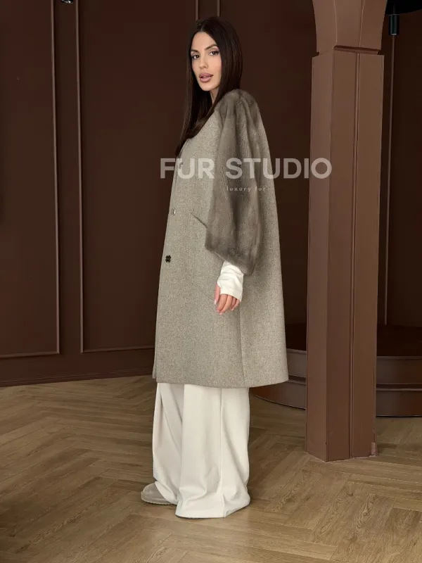 Женское пальто с меховыми рукавами из норки 102910